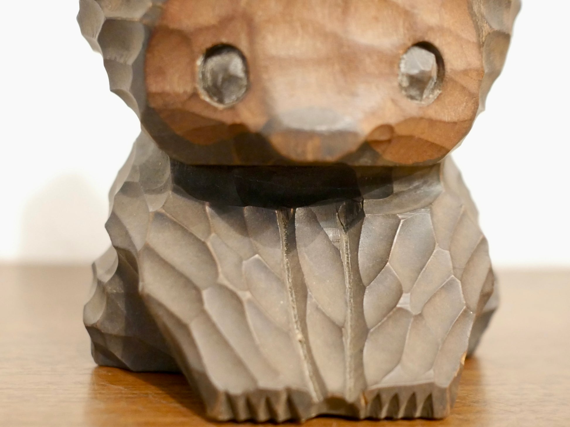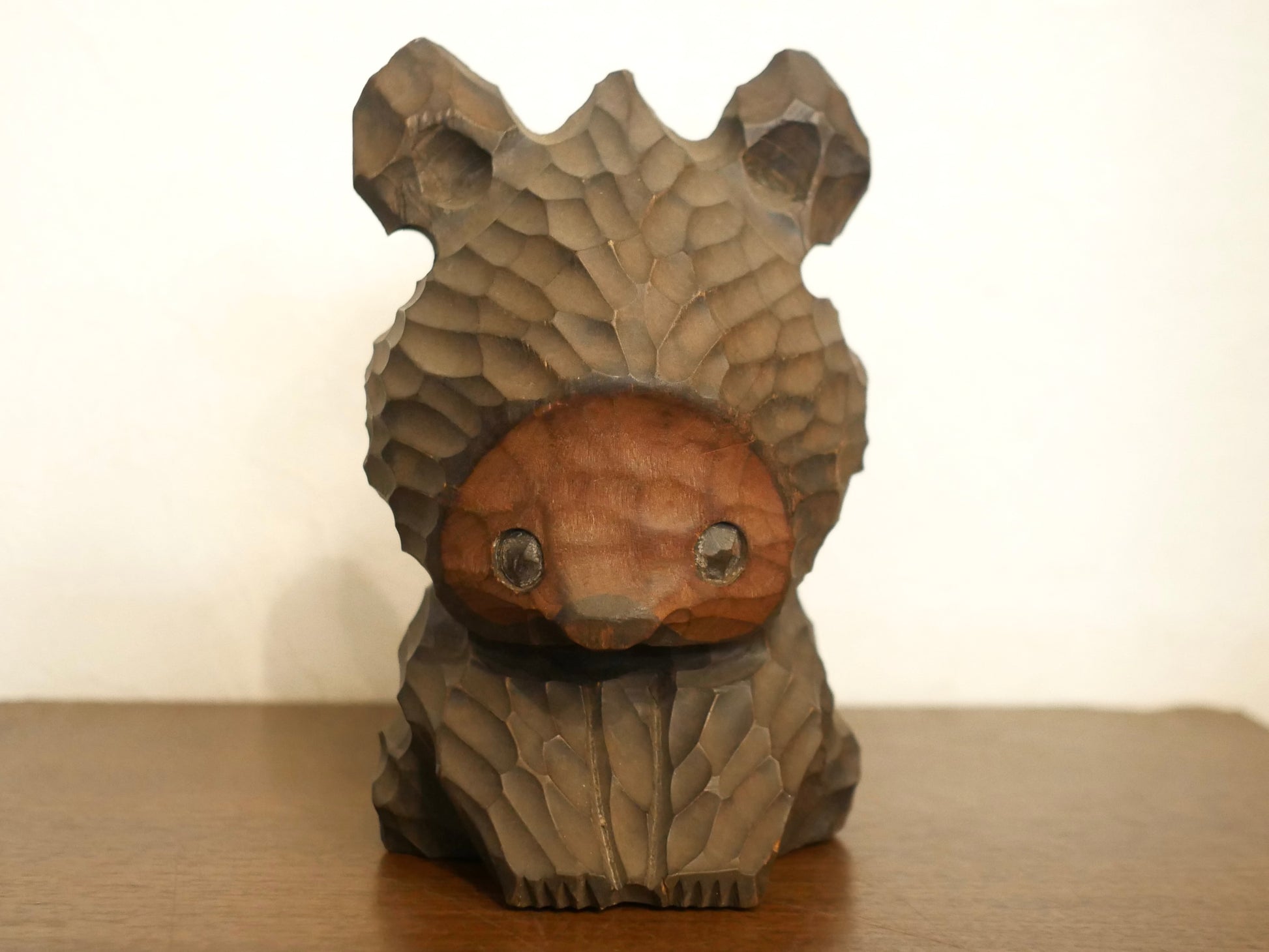 熊ボッコは作者や作風によってひとつひとつかたち姿が異なり、この熊は正座をしてまるでお出迎えしているように見えますね。