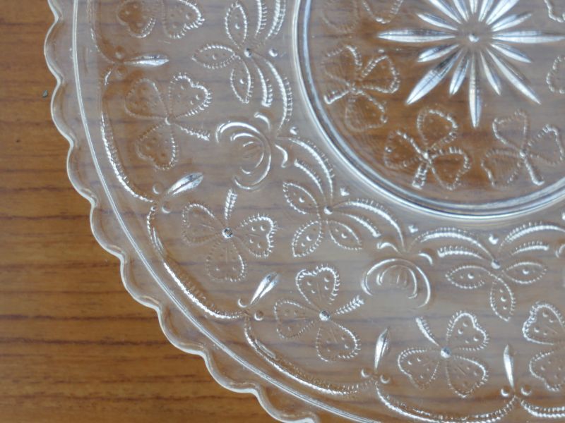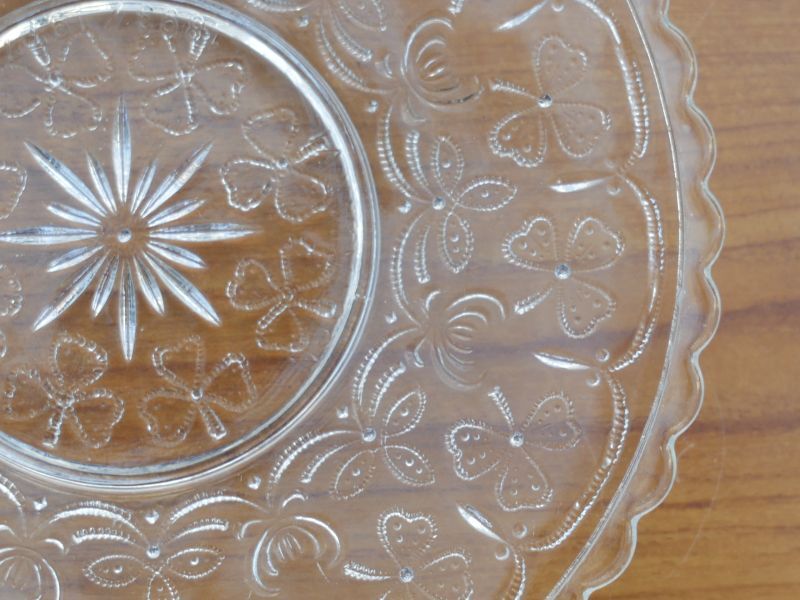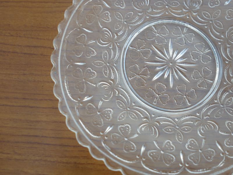 細かな点のエンボスで、三つ葉のクローバーとシロツメグサがレースのように連鎖する愛くるしい逸品です。
