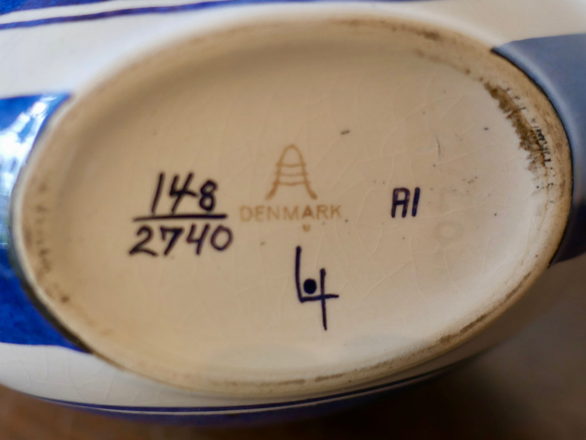 ニルストーソン率いる6名の若手女性デザイナーにより1958年から製作されたシリーズで、 Inge Lise Koefoed(インゲ、リセ、コエフォード)によりデザインされた花瓶です。 白地に幾何学模様、表裏で違う絵柄が個性的でそのまま置くだけで存在感が際立ちます。
